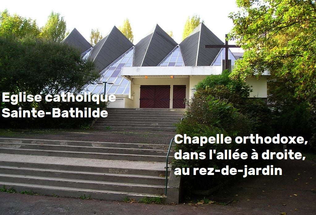 La chapelle orthodoxe est située au rez-de-jardin de l'église catholique Sainte-Bathilde